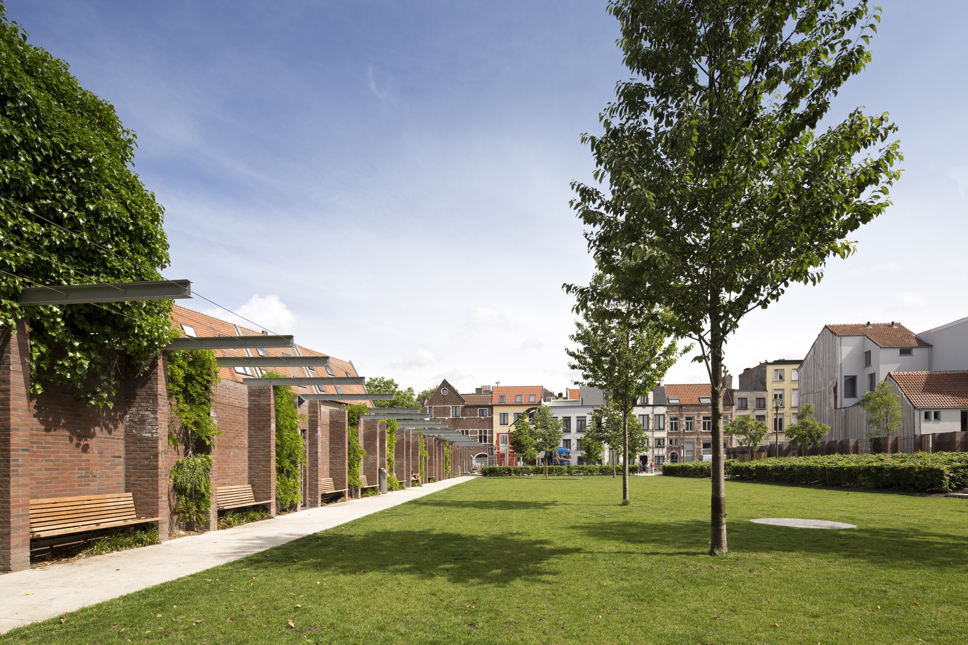 Over info left Waarom dit project? AG Vespa optimaliseert steeds zijn eigen patrimonium. Door het te renoveren en restaureren kunnen we het zo rendabel mogelijk verhuren of verkopen. Wat gebeurt er? In de Muntstraat 2 realiseerden we op een onbebouwd perceel een polyvalente nieuwbouw voor horeca. Het gebouw ligt aan het Munthof en vormt een van de hoekgebouwen van het plein. De nieuwbouw bestaat uit een gelijkvloers en kelder en is grotendeels gelegen achter de nieuwe tuinmuur die rondom het Munthof geplaatst is. De tuinmuur is ter hoogte van het perceel voorzien van openingen volgens een welbepaald ritme en een pergolastructuur van 3 meter met wilde wingerd en blauwe regen. De openingen in de tuinmuur versterken de relatie met de publieke ruimte. Het horecagedeelte vooraan gaat een maximale relatie met het verharde deel van het Muntplein aan, waar ook een terras is. Het horecagedeelte achteraan krijgt zon en daglicht van een patio en tuin. Het project werd in augustus 2014 opgeleverd. Tags handelsruimte AG Vespa-patrimonium info right info-right-fields Rol AG Vespa Eigenaar Architect RADAR Architecten Aannemer Alpas nv Thema AG Vespa-patrimonium Projectkost 510.000 euro excl. btw Adres Muntstraat 2 2000 Antwerpen Status Gerealiseerd Download printversie Gerelateerd Project Het Gebaar Commercieel vastgoed Samen met de uitbater dragen we er zorg voor dat het pand correct onderhouden wordt. Het Gebaar Project Museumcafé MIKA Commercieel vastgoed In 1910 kocht de stad Antwerpen het hele domein om verkaveling te voorkomen. De stad stelde het domein daarna voor het publiek open als park. Museumcafé MIKA Project Hof van Nauwelaerts Commercieel vastgoed Het Hof Van Nauwelaerts, een authentiek monumentaal gebouw gelegen in een Berchems parkje, had nood aan een nieuwe aanpak en invulling. In tandem met de nieuwe concessionaris Jardin Public kreeg het gebouw een totale renovatie en inrichting. Hof van Nauwelaerts