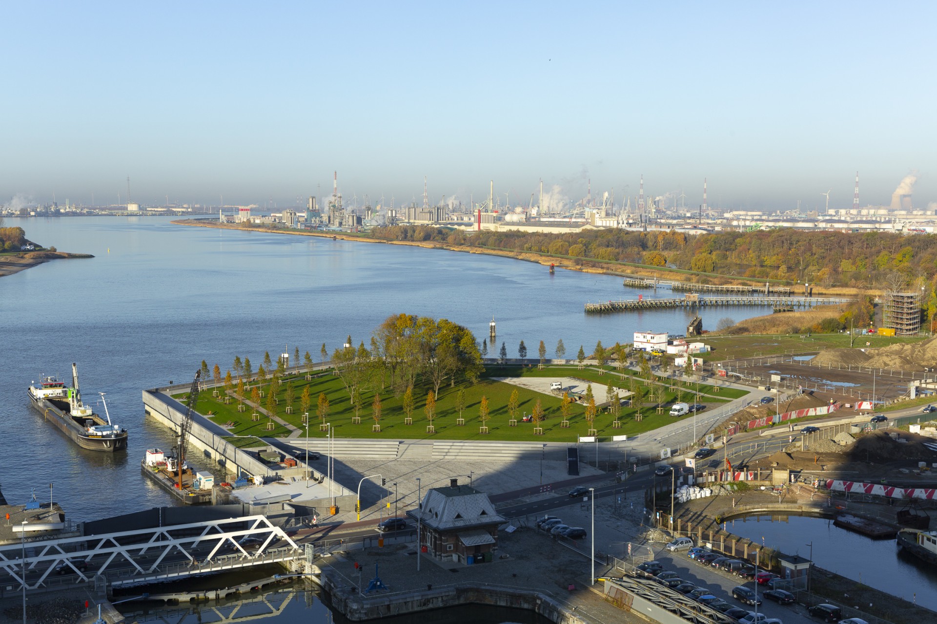 Het eerste deel van het Droogdokkenpark op het Eilandje is klaar: de Belvédère, een groot, groen, architecturaal zeshoekig uitkijkpunt van 2 hectare aan de Schelde waarin de nieuwe kaaimuren verwerkt zijn. De komende jaren volgt de rest van het Droogdokkenpark: een unieke groene uitwaaiplek van 11 hectare op het Droogdokkeneiland.