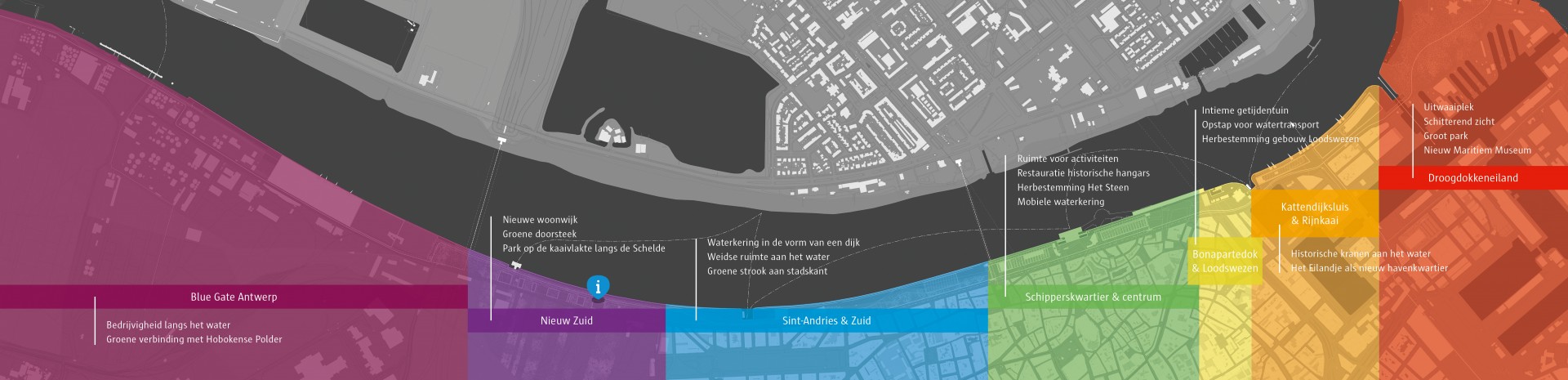 Het definitieve masterplan Scheldekaaien is klaar. Dat is een plan waarin de Scheldekaaien zijn opgedeeld in 7 deelgebieden.
